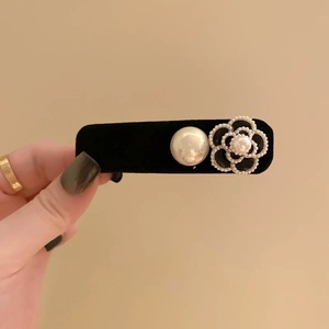 高级感丝绒珍珠山茶花侧边发夹复古鸭嘴夹子头饰小香风刘海夹顶夹