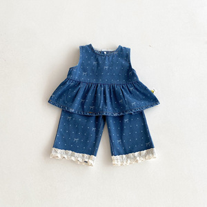 女の子スーツ秋の新スタイルベビーデニムベストパンツボトリングシャツツーピース韓国風ベビー服
