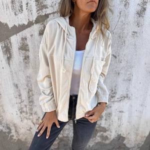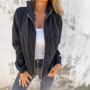 独立したステーションクロスボーダーホットセール秋の新作ソリッドカラージャケット女性用ヨーロッパとアメリカのシンプルなスタイルのコーデュロイフード付きジャケット女性用