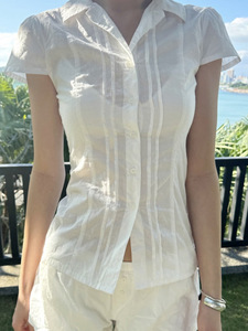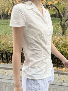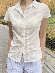 カレッジスタイルのレースステッチチェック柄トップ女性の夏のガーリーな気質多用途ポロカラー半袖シャツ