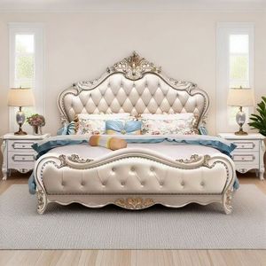 欧式软包床复古实木床双人床1.8主卧大床婚床家用宫廷软靠公主床