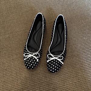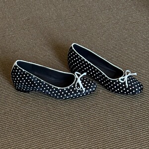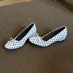 已出货~圆头蝴蝶结波点内增高玛丽珍女鞋浅口一脚蹬复古芭蕾单鞋