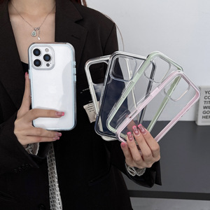 iPhone16Promax Apple 15に適したシンプルな透明なソリッドカラーのボーダー高透明ツーインワン落下防止携帯電話ケース