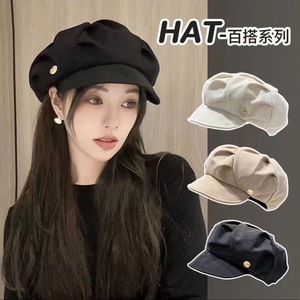 褶皱云朵帽子女2025年韩版八角帽大头围显脸小时尚个性小众贝雷帽
