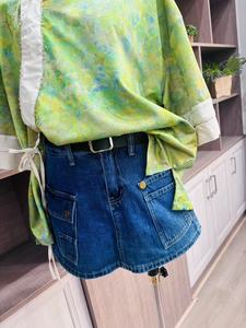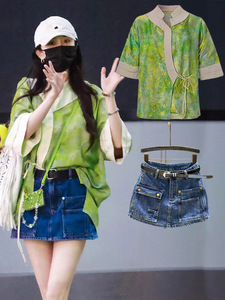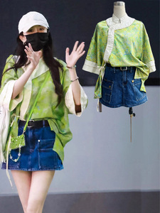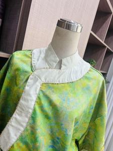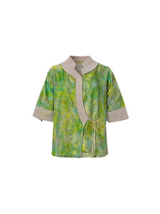 スポットヤンミ同じスタイル 2025 グリーン新中国風国民風レーヨントップ女性のルーズで多用途な斜めラペルレースアップジャケット
