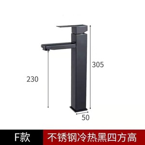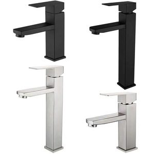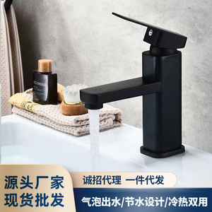 洗面器黒蛇口ステンレス鋼正方形単穴卸売家庭用浴室温冷単冷洗面器蛇口