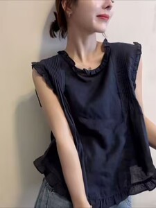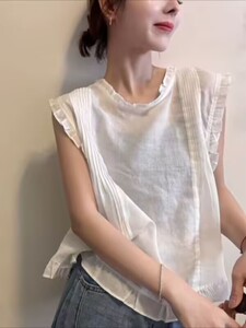 人気の25夏の新作韓国風ファッション万能ノースリーブシャツレディーストップスハイエンドカジュアルシャツトレンド