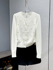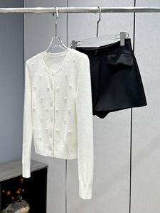 时尚通勤气质套装女深圳南油2025年秋款蝴蝶结钉珠针织衫阔腿短裤