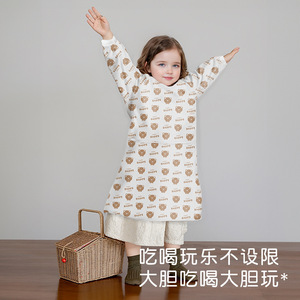 Happy Bear 逆着用長袖ブラウスエプロン (子供用) 身長 110-140CM 以内 --- 拡張、防汚、通気性、ソフト