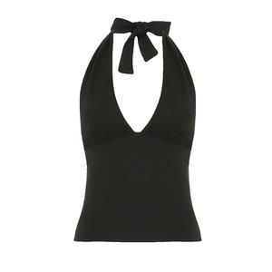 2025 ヨーロッパとアメリカのクロスボーダー春夏新作ホルターネックレースアップセクシーなローカットバックレススリムフィットノースリーブベストトップ
