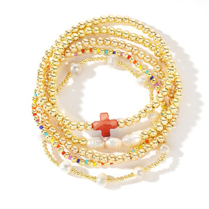サマーライトラグジュアリーカラービーズクロスブレスレット・ゴールドビーズパールスタック万能エッセンシャルブレスレットライトラグジュアリーハイエンドスタック