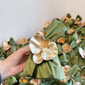 丝绒袋 绿色+金色蝴蝶兰+别针+绿色流苏 16*22cm