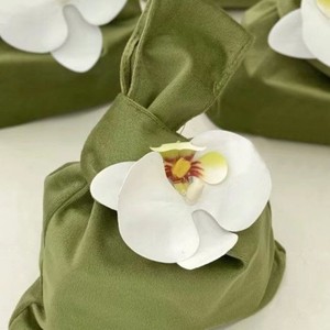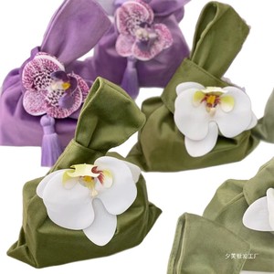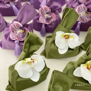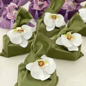 丝绒袋 绿色+白蝴蝶兰+别针 16*22cm