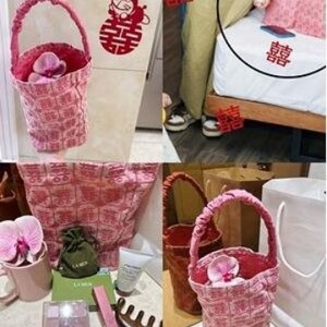 粉色双喜手提袋空袋不含配饰约16*18+4cm