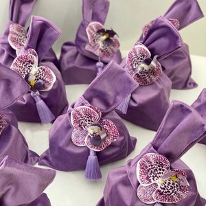 丝绒袋 紫色+蝴蝶兰+别针+紫色流苏 16*22cm