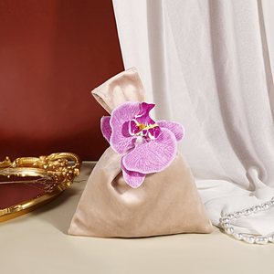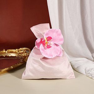 丝绒袋 粉色+粉蝴蝶兰花+别针16*22cm