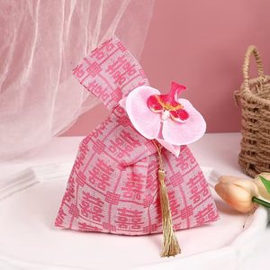 粉色双喜手提袋约16*18+4cm+蝴蝶兰+流苏+别针*1