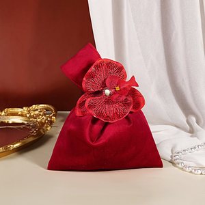 丝绒袋 大红+红蝴蝶兰花+别针16*22cm