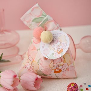 双喜手提袋约16*18+4cm+小花喜乐吊牌+流苏+别针*1