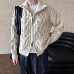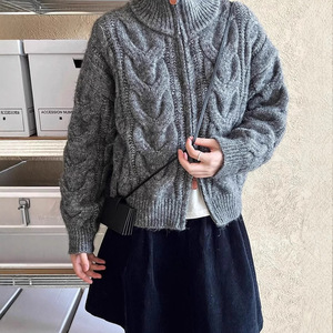 レイジースタイルラペルツイストセータージャケット女性のための秋と冬の新しい韓国スタイルルーズジッパー肥厚ニットカーディガントップ