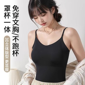 胸パッド付きの新しいシームレスなアイスシルクキャミソール、インナーとアウター用の美しいバックオールインワン