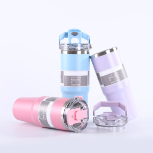 国境を越えた新しい 30 オンス透明蓋車カップ 304 ステンレス鋼断熱カップ車のポータブル手持ちアイスカップ