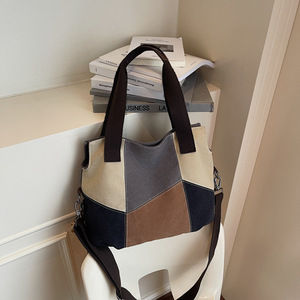 シンプルなファッションレディースバッグコントラストカラーキャンバスバッグ女性の大容量レトロコントラストカラーステッチ布バッグ新しいショルダーハンドバッグ