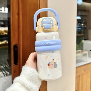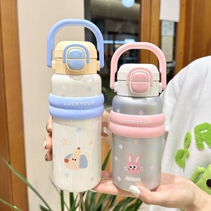 316不锈钢弹盖萌趣双饮保温杯大容量带提手学生儿童卡通吸管杯