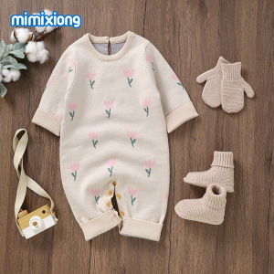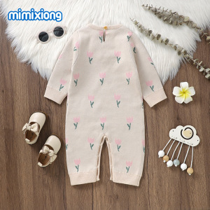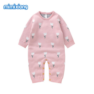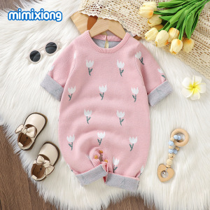 春秋冬季热卖新款郁金香提花婴儿宝宝针织连体哈衣爬服
