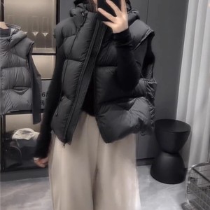 ヨーロッパショートコットンベストレディース春秋新作小柄ファッション万能フード付きシンプルノースリーブベストトップ
