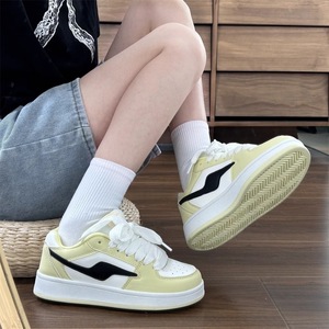 カレッジスタイル国民トレンドニッチパンシューズ女性用イントレンド2025夏新作多用途厚底ラウンドトゥレースアップスニーカー