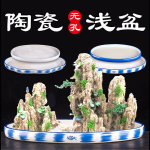 吸水石底座盆上水石假山盆景盆微景观水仙铜钱草陶瓷水培无孔花盆