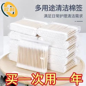 家用双头棉签棉花棒一次性卸妆化妆掏耳朵木棒婴儿清洁卫生小棉棒