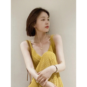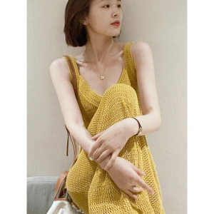 夏季新款法式别致惊艳御姐轻熟风气质休闲黄色吊带连衣裙子女长裙