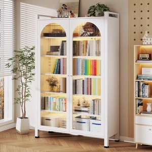 钢制书柜家用儿童落地防尘储物柜客厅夹缝带门书架书房铁艺置物架