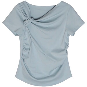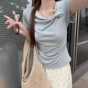 扭结T恤女夏季2025甜美不规则褶皱内搭上衣ins韩系斜领短袖韩系风