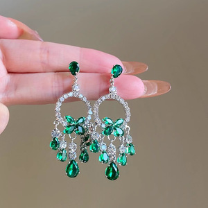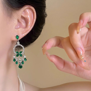 スーパーフラッシュジルコンエメラルドバタフライタッセルイヤリングライトラグジュアリーハイエンド気質イヤリングインターネットセレブと同じスタイルのイヤリング