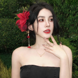 新しい中国風の赤い牡丹の花の真珠のタッセルヘアピンレトロなハイエンドの気質ヘアサイドクリップ古代スタイルの頭飾り