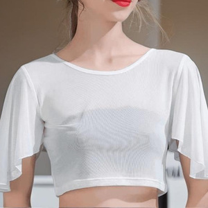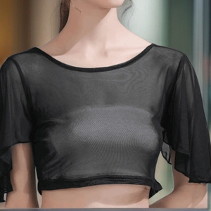 ラウンドネックハーフバットフライセクシーで多用途なフェイクカラーブラウストップ新しい女性の春夏の妖精シースルーメッシュ