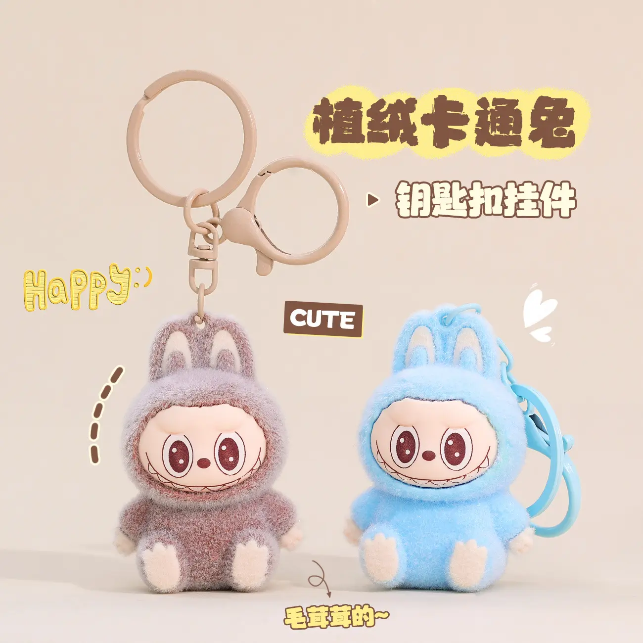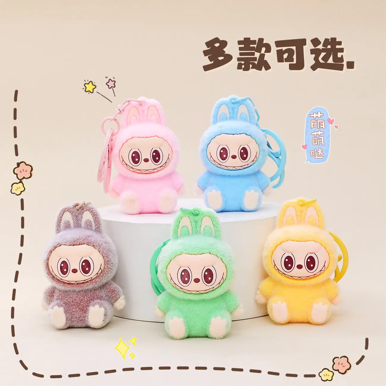 植绒拉布布钥匙扣可爱立体公仔学生书包挂件创意labubu钥匙扣萌趣