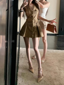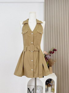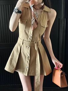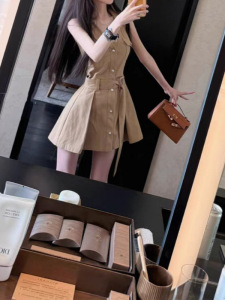 マンチェスターシティブロック*オリジナルワークウェアカジュアルホットガール気質ウエスト痩身Vネックノースリーブ夏Aラインスカート