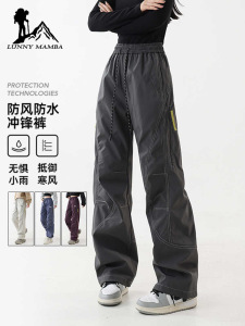 大牌黑色冲锋裤女款春秋季户外运动防风防水登山裤速干工装裤