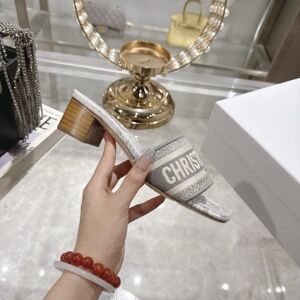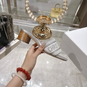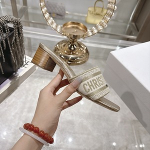 渠道版!全颜色!全系列!D家刺绣字母拖鞋女外穿夏粗跟一字凉拖
