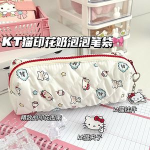 ins 新しいかわいいハローキティケーキ鉛筆バッグ高価値プリントバブル収納袋大容量学生鉛筆