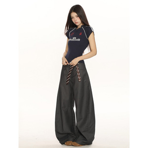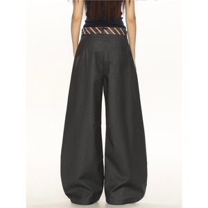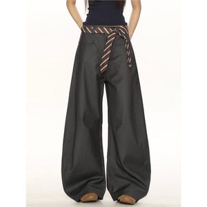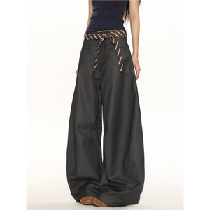 美式复古高级感休闲弯刀裤西裤小众设计感百搭垂感阔腿拖地裤ins