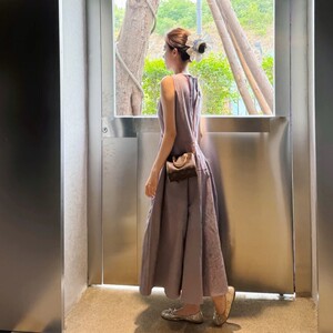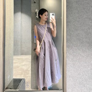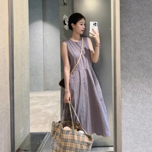 レディース2025新作パープルノースリーブベストドレス今年人気の大きいサイズの小柄な夏のスカート
