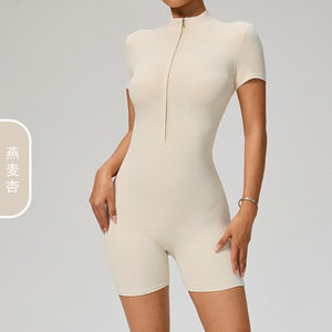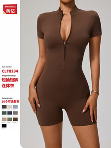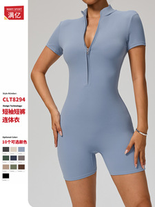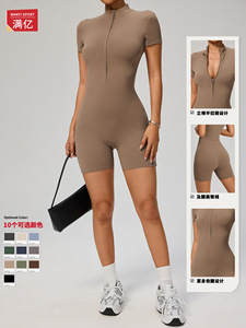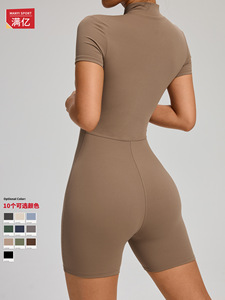 MANYI ヨーロッパとアメリカの夏ジッパー半袖ヨガジャンプスーツ女性のダンスフィットネスタイトなスポーツジャンプスーツ 8294