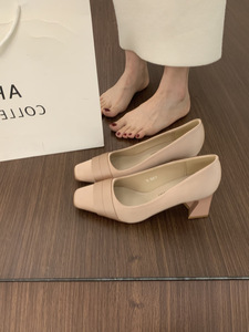 气质名媛风法式粗跟缎面高跟鞋女鞋子2025新款5cm配裙子仙女单鞋