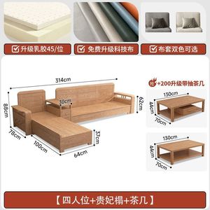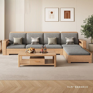 北欧风白蜡木实木沙发现代简约小户型四季款储物原木色组合