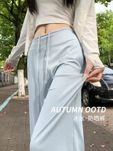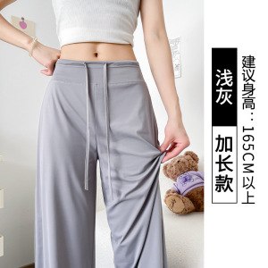 アイスシルクワイドレッグパンツ女性のための 2025 新しい夏薄いスタイル小高ウエストストレートドレープカジュアル痩身日焼け止めパンツ